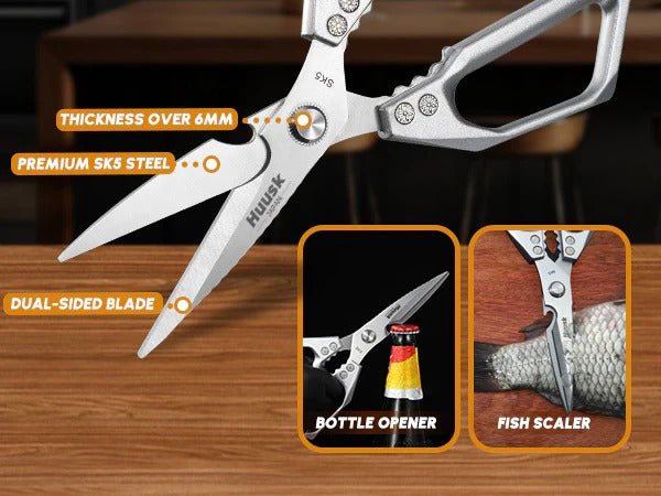 Ahorra espacio y dinero con tijeras que reemplazan varios utensilios.