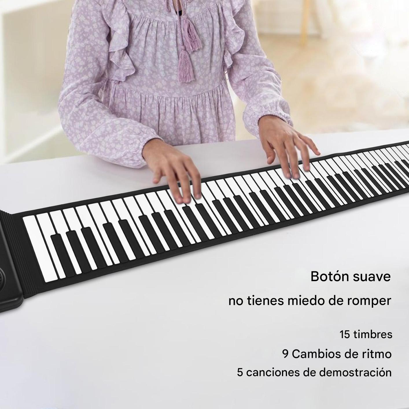 Este teclado enrollable te permite practicar en cualquier lugar sin ocupar espacio. Perfecto para principiantes y músicos en movimiento