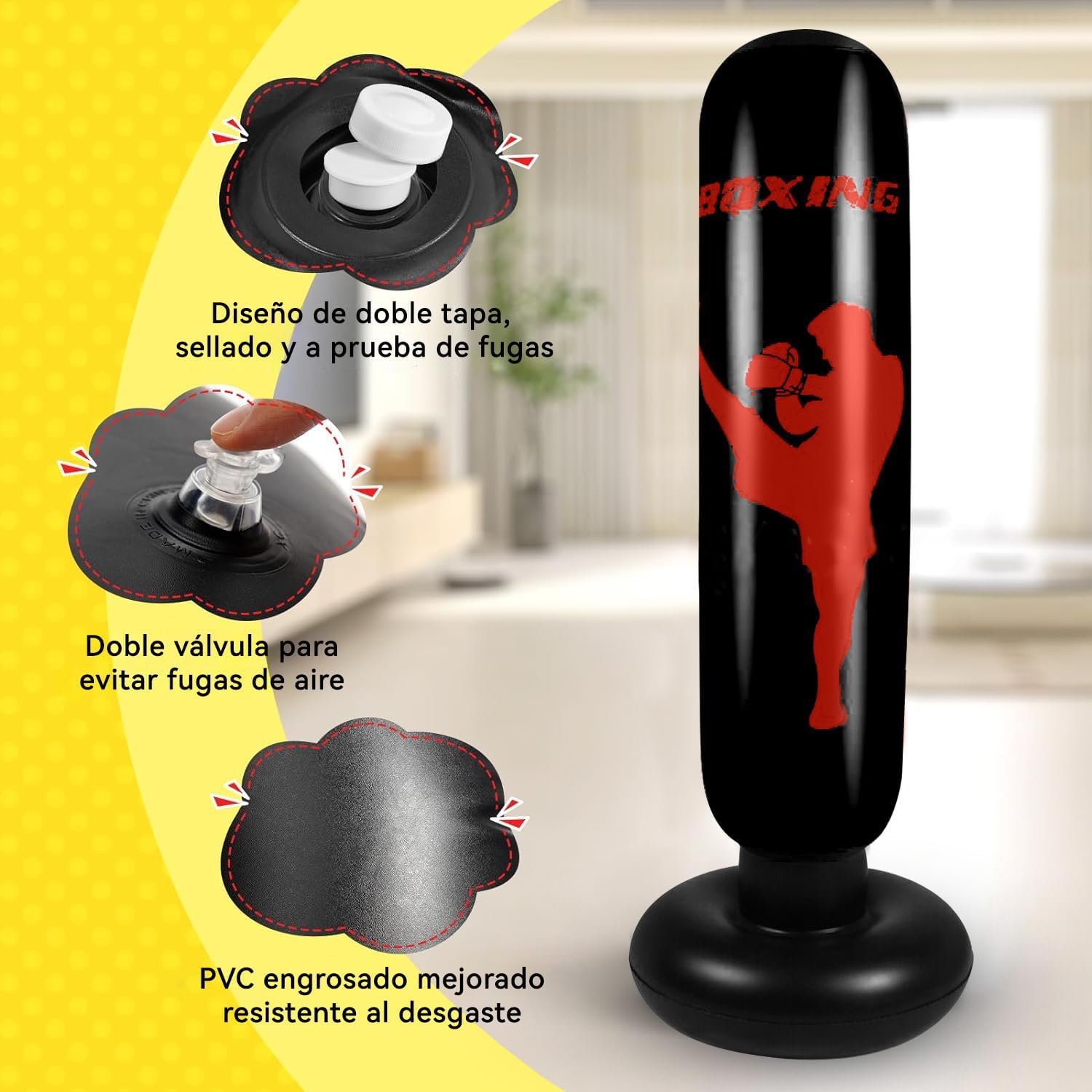 Juego suave y seguro: esta bolsa de boxeo de pie para niños de 5 a 12 años rebota cuando se golpea. La superficie de la bolsa de patada es suave en las manos, no necesita guantes. Los objetivos permiten a los niños practicar de manera más eficiente ayudando con las práctica de artes marciales.