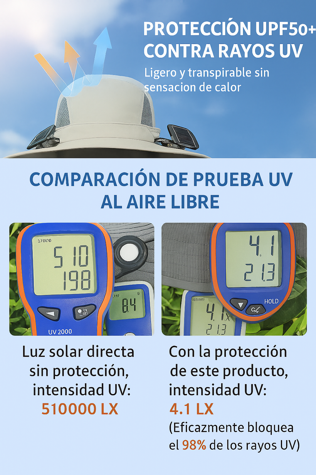 Combina protección solar con refrigeración manos libres para que disfrutes de tus actividades al aire libre de la mejor manera.