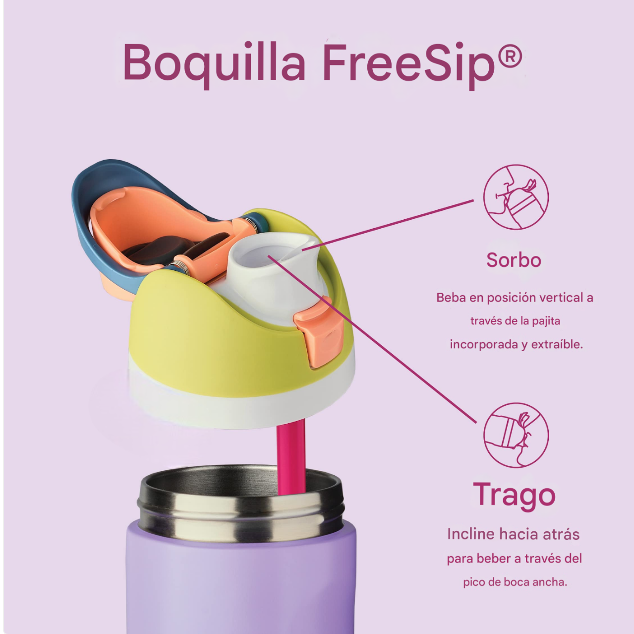 Tecnología de doble sorbo: sorbe o bebe de un trago: tu hidratación, tu elección.